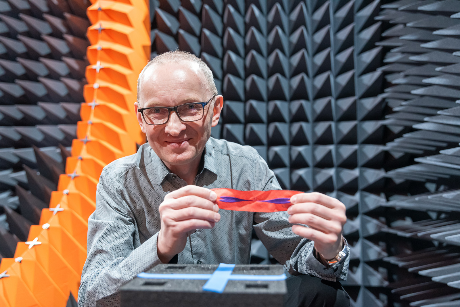 We have already become accustomed to living with RFID technology, e.g. using contactless payments for daily shopping, ski-passes on the ski slopes, access control or documents with an electronic layer such as ID cards and biometric passports. The unique solution of the mentioned industrial research, which is carried out for the company Esotiq&Henderson by a team of employees from the Department of Electronic and Telecommunication Systems, is the production of an electronic radio frequency transponder and its integration with textile products by means of commonly used sewing methods.