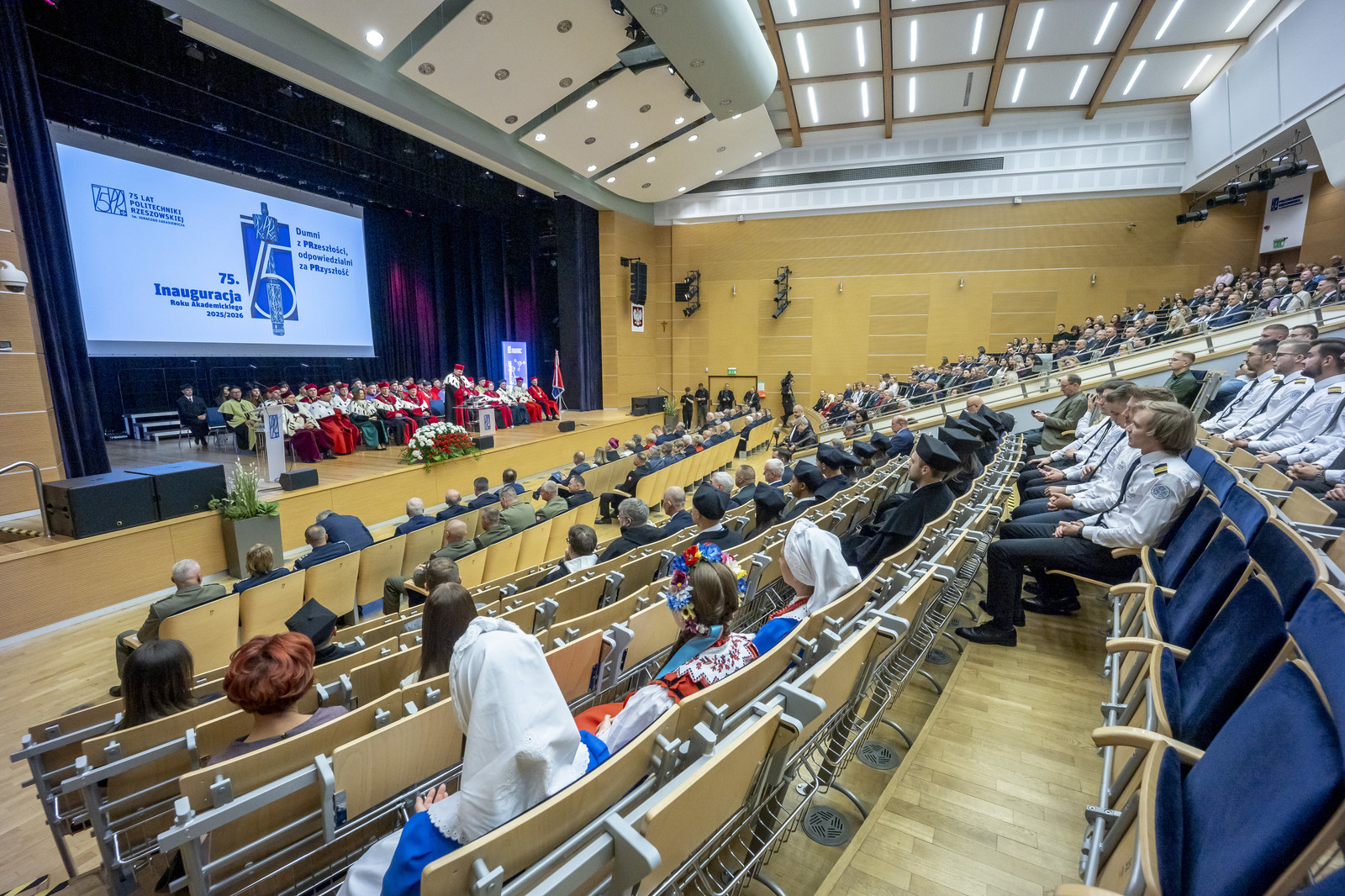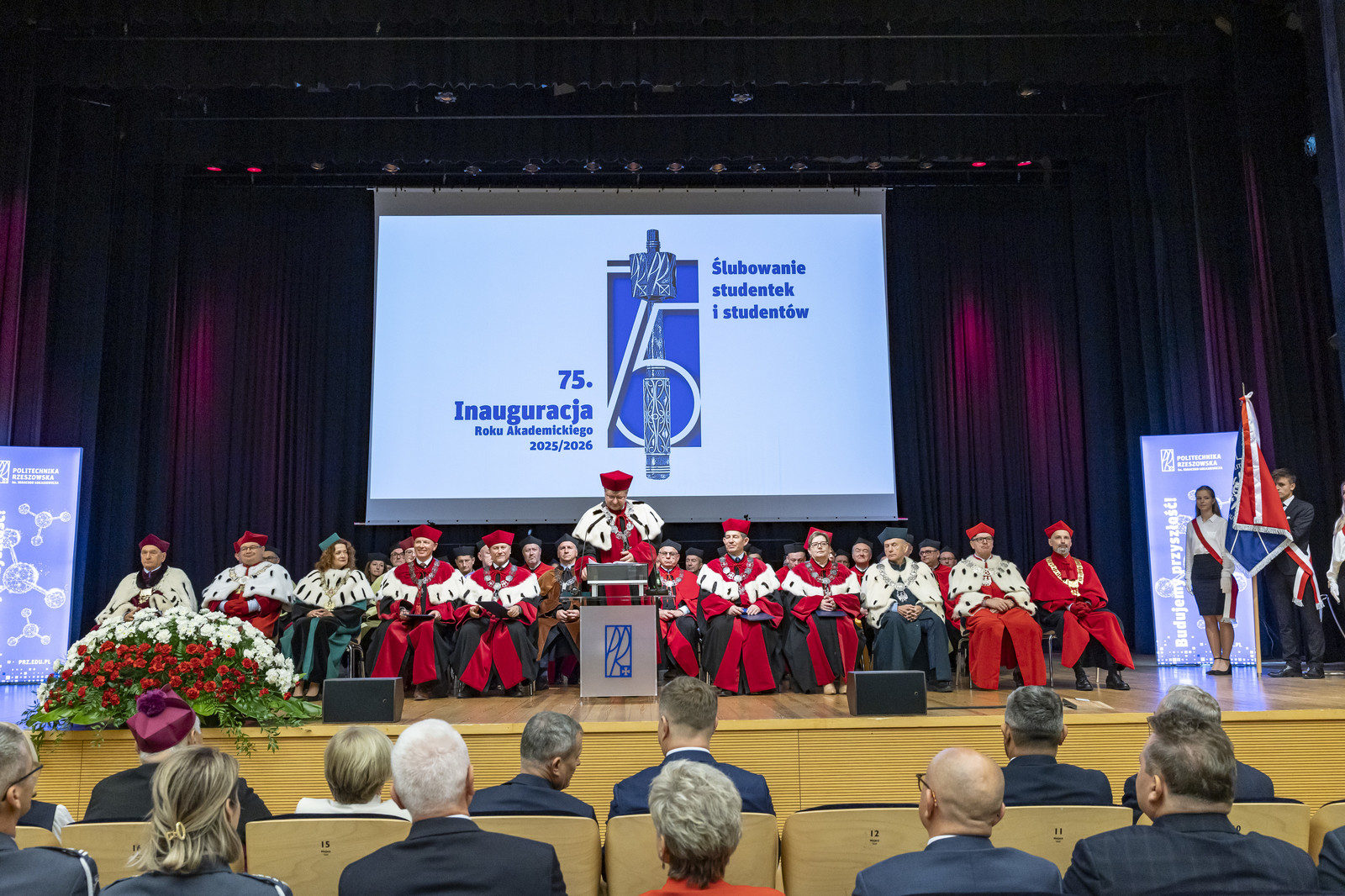 „Inauguracja roku akademickiego to nie tylko uroczystość, to także moment refleksji nad tym, czym jest uczelnia, kim jesteśmy jako jej członkowie i dokąd zmierzamy. W świecie pełnym niepewności uczelnia pozostaje jednym z ostatnich bastionów racjonalności, otwartości i dialogu. To nasza odpowiedzialność – chronić te wartości i przekazywać je kolejnym pokoleniom” – mówił rektor prof. Piotr Koszelnik podczas przemówienia inaugurującego jubileuszowy 75. rok akademicki na Politechnice Rzeszowskiej.
