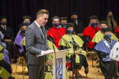 Głos zabrali również przewodniczący Parlamentu Studentów Rzeczypospolitej Polskiej Dominik Leżański oraz przewodniczący Samorządu Studenckiego naszej uczelni Michał Klimczyk, który w swoim wystąpieniu podkreślił m.in. zalety studiowania na naszej uczelni i zachęcał studentów pierwszego roku do działalności w organizacjach studenckich.