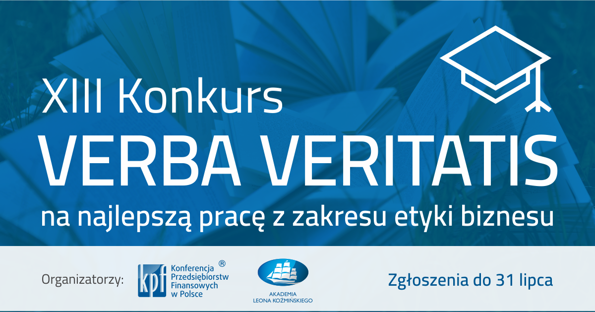Konferencja Przedsiębiorstw Finansowych oraz Akademia Leona Koźmińskiego ogłosiły XIII edycję konkursu VERBA VERITATIS. Dla zwycięzców przewidziana została łączna pula nagród w wysokości min. 10 000 zł.