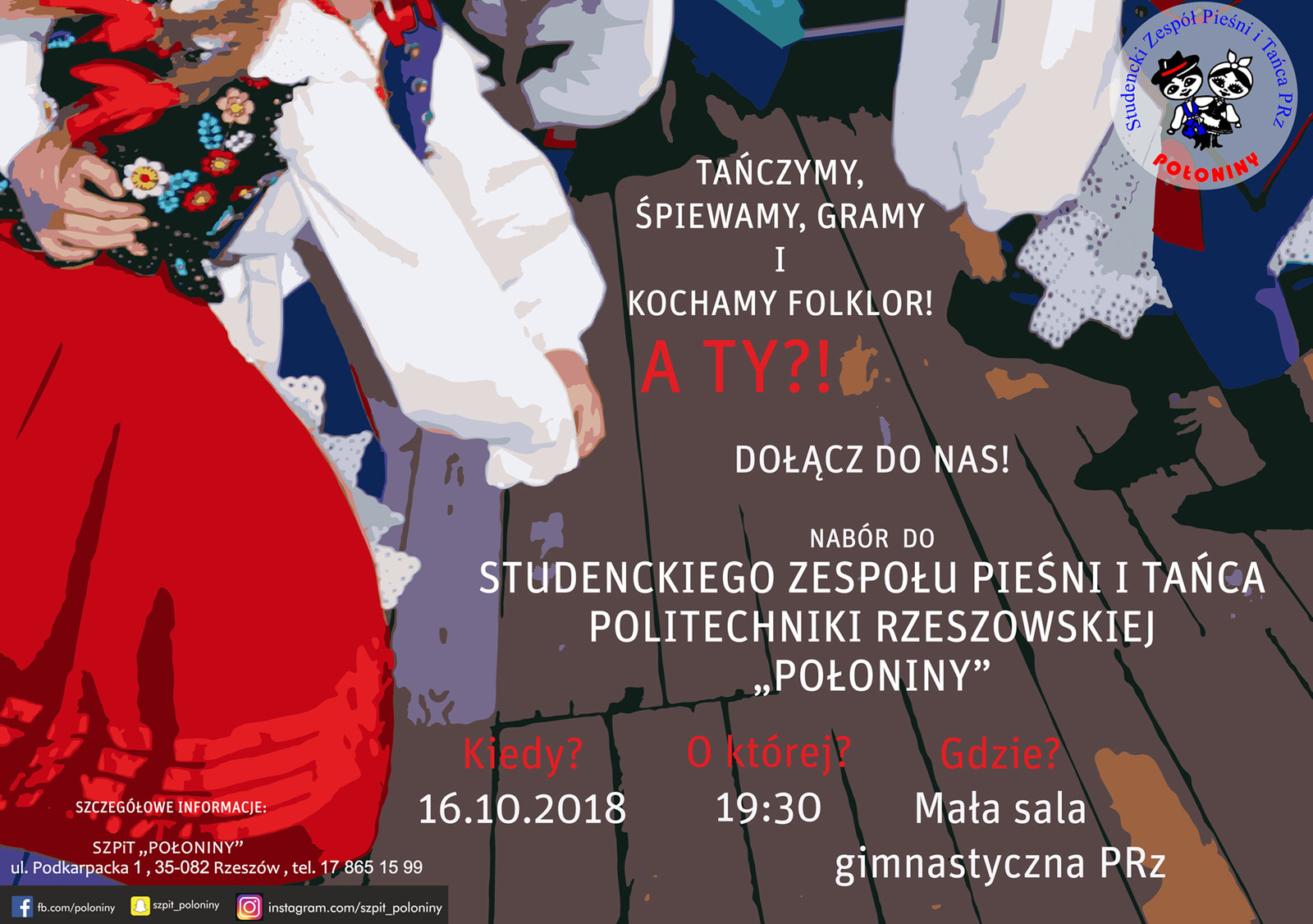 Kochasz Folklor? Tańczysz od lat w zespołach ludowych lub chcesz nauczyć się pięknych polskich tańców od podstaw?Umiesz śpiewać lub chcesz odkryć, że śpiewać potrafisz? Grasz na instrumencie (skrzypce, klarnet, akordeon, trąbka, kontrabas) i chciałbyś być częścią wspaniałej ludowej kapeli?
